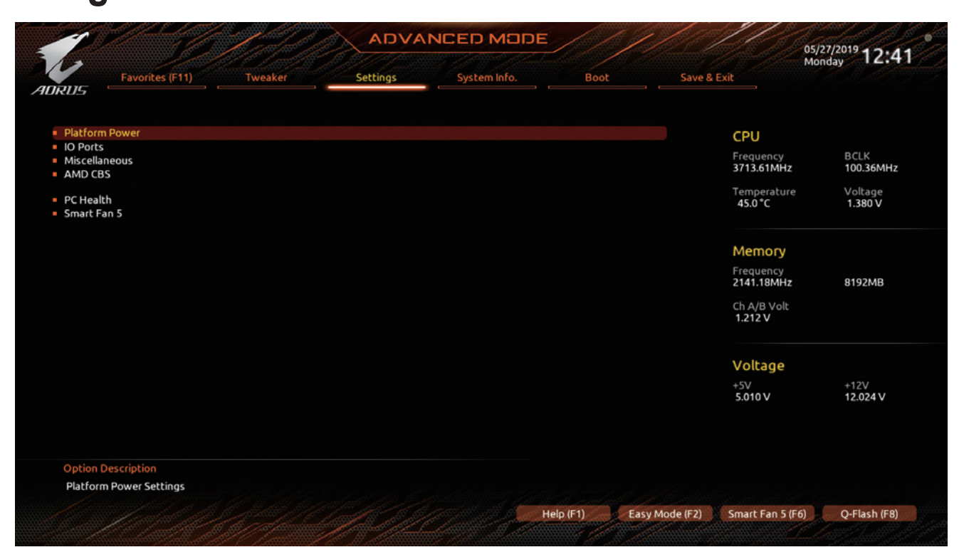 Once there, navigate to the "Settings" tab, and then to "Platform Power".