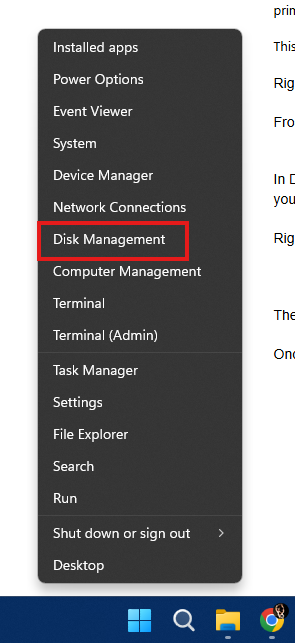 From the popup menu, click Disk Management.