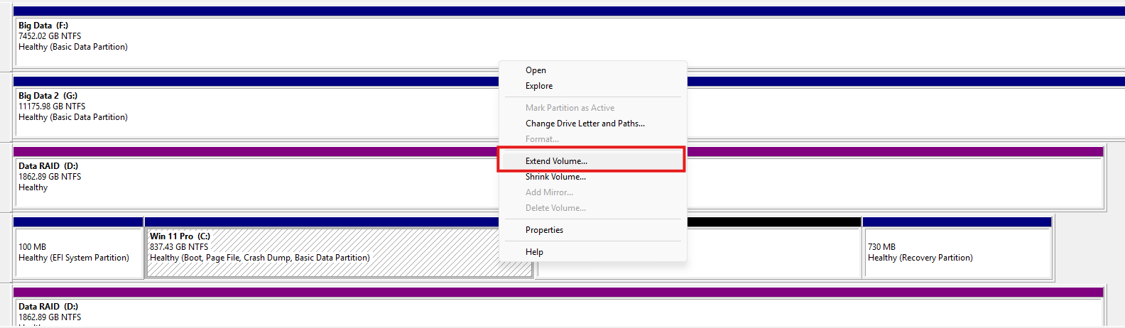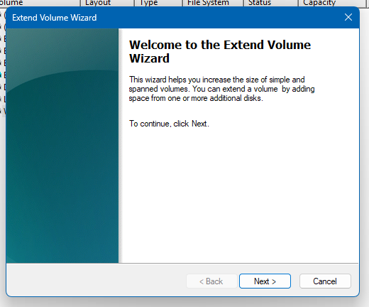 Then follow the menu's instructions to extend the drive's available space on the volume: